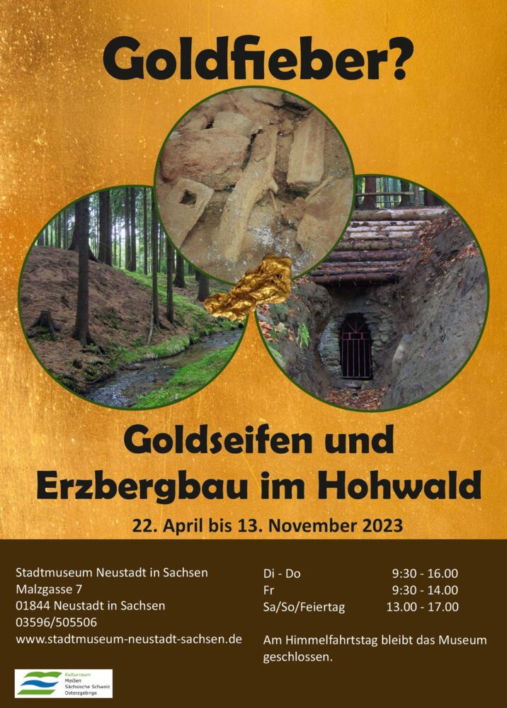 In einem der vielen Bachläufe wurden bearbeitete Hölzer gefunden, die sogar das Sächsische Landesamt für Archäologie beschäftigten. Im November 2022 wurden die Forschungsergebnisse bekannt gegeben. Zwei der Hölzer datieren auf das Fälljahr 1237, also auf knapp 100 Jahre vor der Ersterwähnung der Stadt Neustadt. Damit beherbert der Hohwald die älteste datierte Goldseife Sachsen. Eine kleine Sensation!Die Ausstellung thematisiert, wie der Bergbau im Mittelalter im Hohwald betrieben wurde, geht der Frage nach, wie die Menschen lebten und arbeiteten, zeigt Einige der damals gesuchten Bodenschätze und erklärt, was daraus hergestellt wurde. Natürlich spielen auch die wunderlichen Fabelsewesen, die ihr Unwesen im Hohwald treiben, eine Rolle. Für die kleinen Besucher eröffnet sich ein geheimnisvoller Stollen,der zu dem ein besonderer Pfad führt, Kraftproben gilt es zu bestehen und am Ende kann vielleicht sogar ein kleiner Schatz gehoben werden.