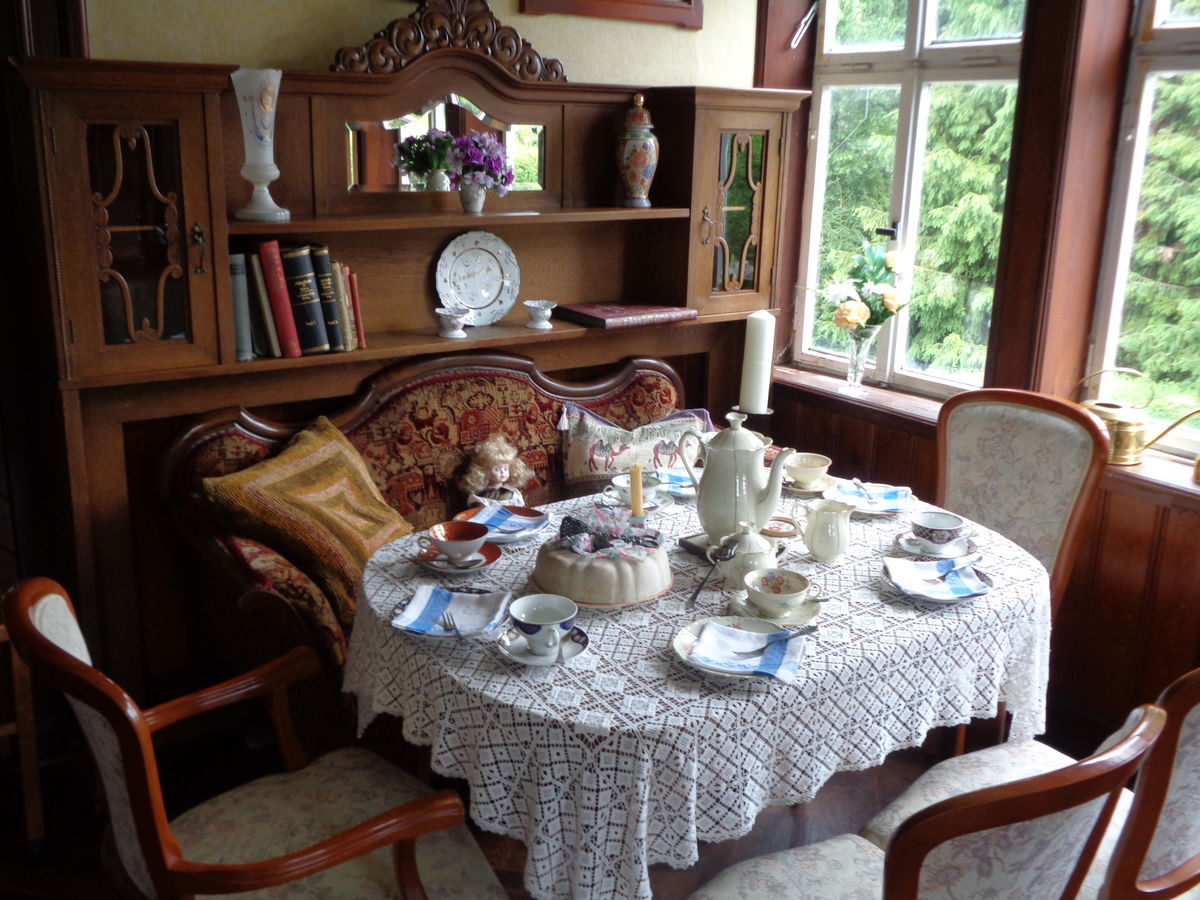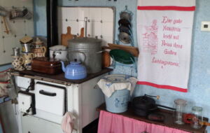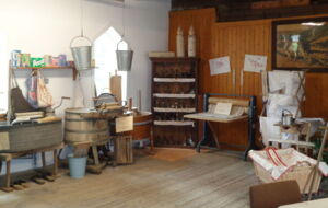 Im ehemaligen Wohnhaus können einige historisch eingerichtete Räume (Küche, Wohnstube, Schlafzimmer, Klassenzimmer),