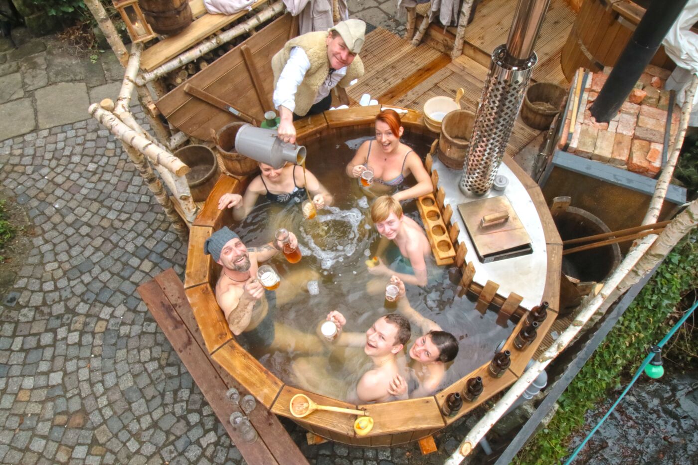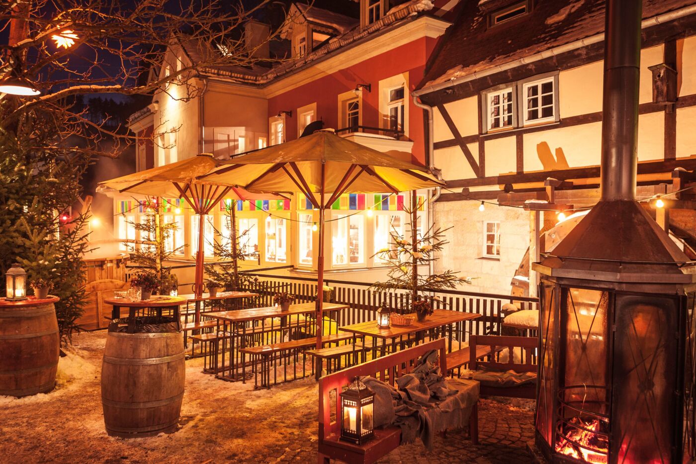 Nebenan in der Bio-Bäckerei duftet es herrlich nach frischem Mühlenbrot. Genießen Sie die wohltuende Wärme bei einem Besuch in der Panoramasauna mit Blick über den geschmückten Mühlenhof. Oder wagen Sie bei kühlen Temperaturen den Sprung in einen beheizten Badezuber. Regelmäßig lädt der Bademeister hier zum Bierbadetag. Bei Veranstaltungshighlights, wie Lesungen, Konzerten oder Reisevorträgen, können Sie Ihren Erlebnistag entspannt ausklingen lassen. Verbringen Sie einen Genussurlaub mitten in der Natur und lassen Sie sich vom Winterdorf Schmilka verzaubern!